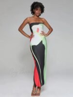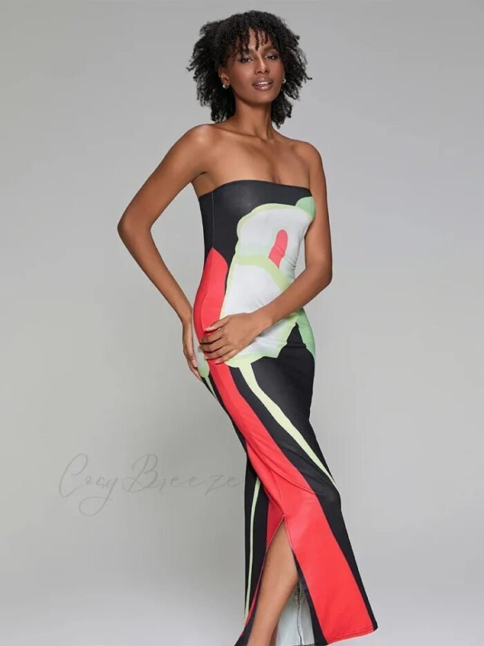 Abstract Print Strapless Side Split Dress